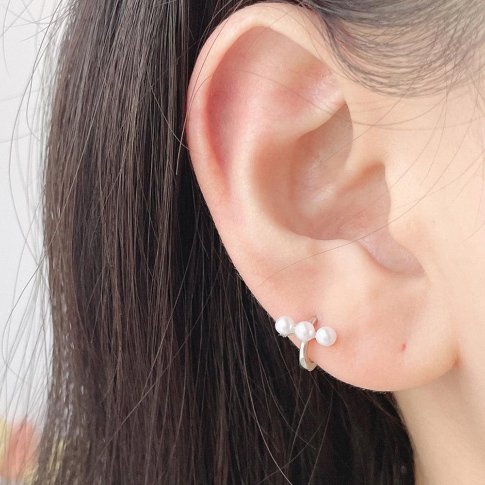 ดีไซน์แหวนสัมผัสเดียวที่สวมใส่ง่าย ตกแต่งด้วยไข่มุกเล็กๆ สามเม็ดเพื่อให้ดูหรูหรา และเมื่อสวมที่หู ก็จะพอดีและดูโดดเด่น!