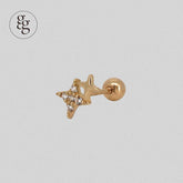 ต่างหูคู่นี้มีลวดลายดาวระยิบระยับประดับด้วยเพชรคิวบิกเซอร์โคเนีย การออกแบบอันเป็นเอกลักษณ์ทำให้โดดเด่นแม้จะใส่เพียงตัวเดียว มีความหนาเท่ากับ การเจาะ หรือน้ำลายและสวมใส่ได้ง่ายในทุกตำแหน่ง สี : เหลืองทอง วัสดุ: ทอง 14k (58.5%) น้ำหนัก: ประมาณ 0.22 กรัม ขนาด: ประมาณ 6*6มม. (จี้) ความหนาของแท่ง : 0.7มม. / ตัวล็อกลูก : 3มม.- From ¥14,080