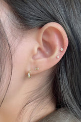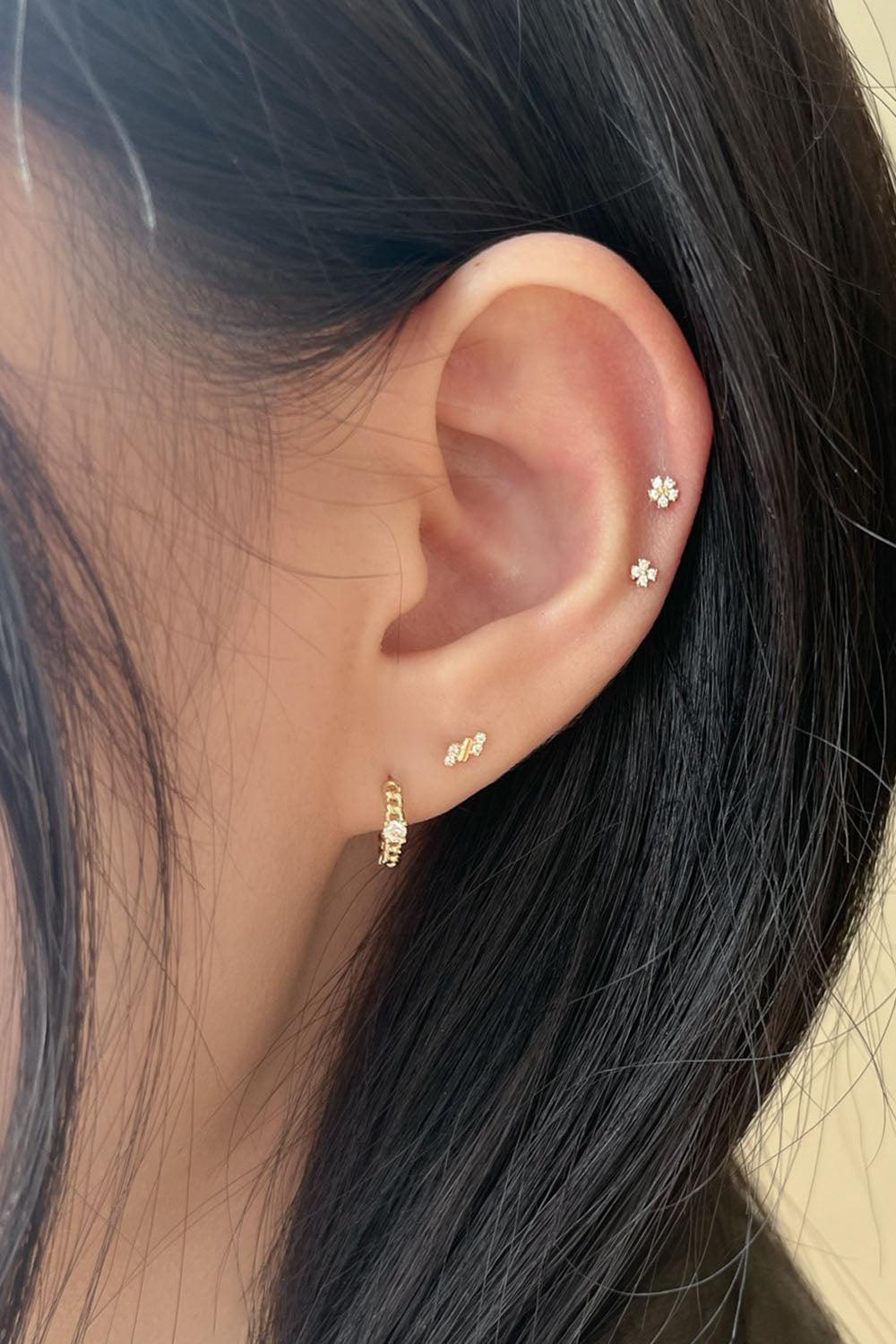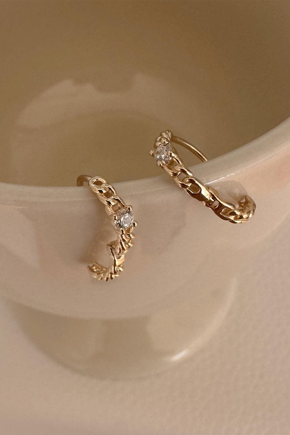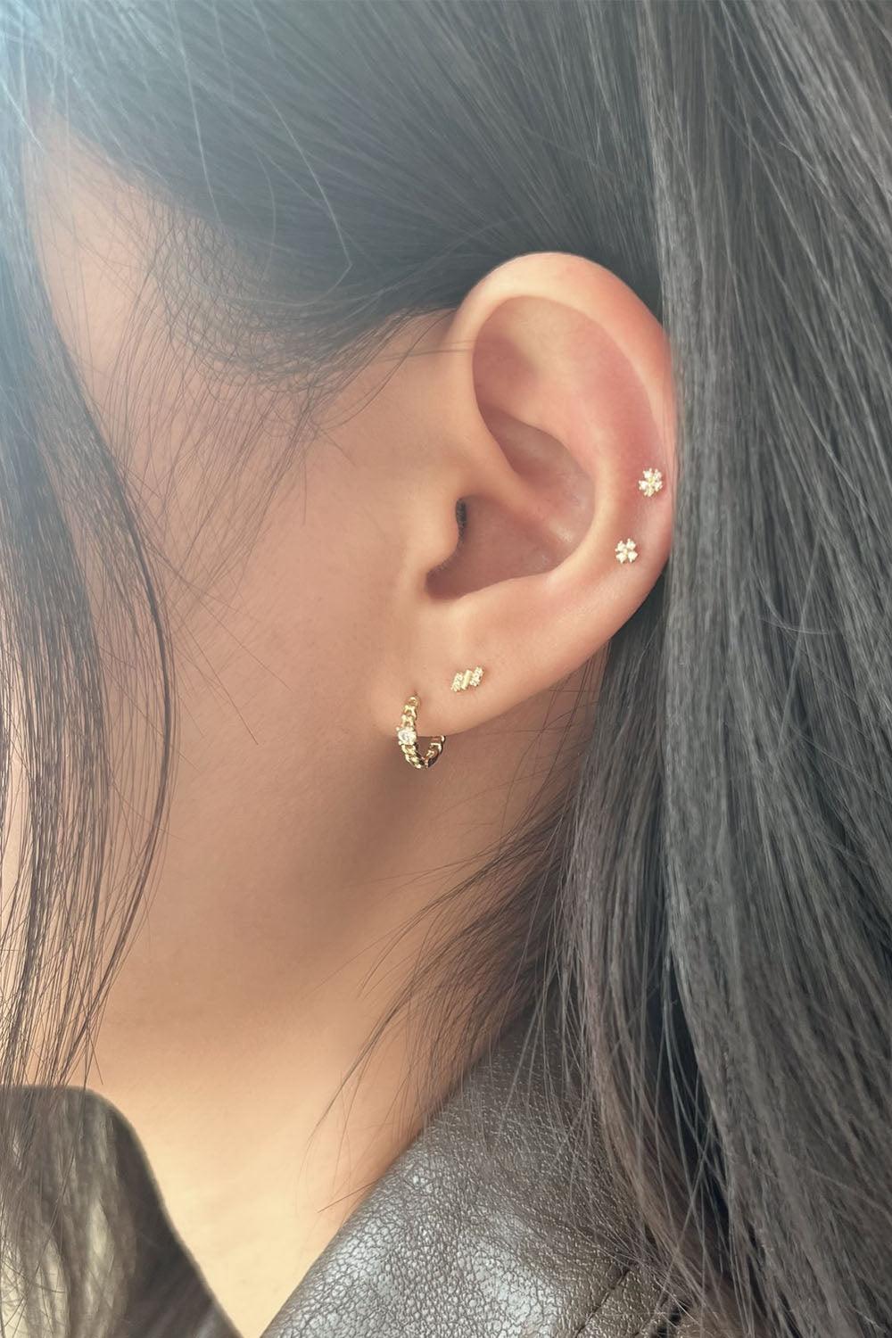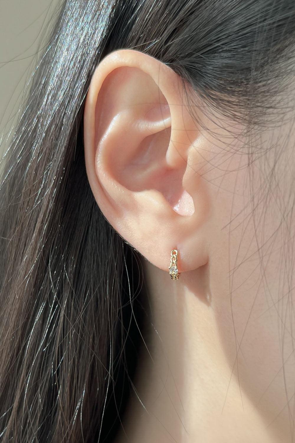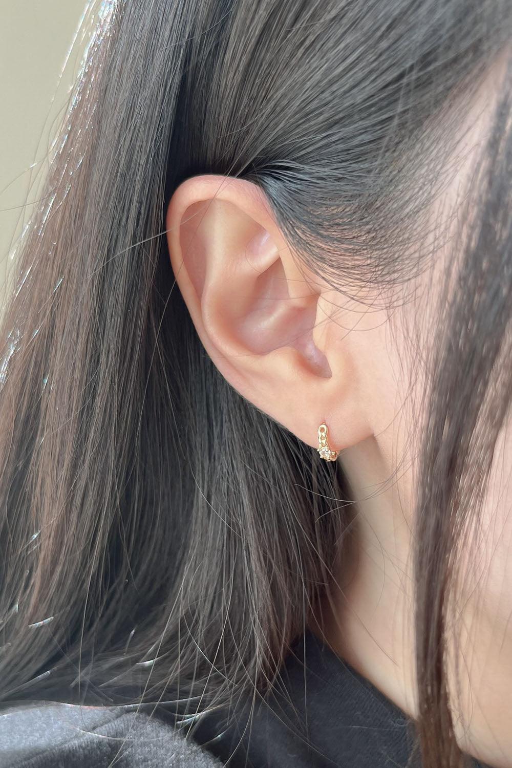 ต่างหูแบบสวมนิ้วคู่นี้โดดเด่นด้วยเพชรคิวบิกเซอร์โคเนียประกายแวววาวอยู่ตรงกลางของแหวนทรงโซ่