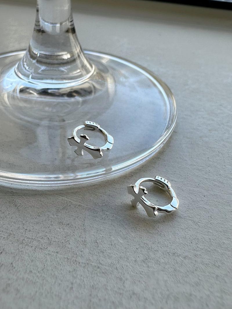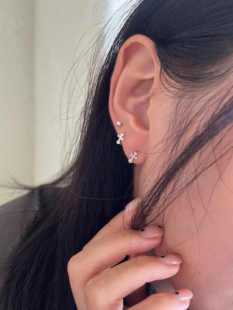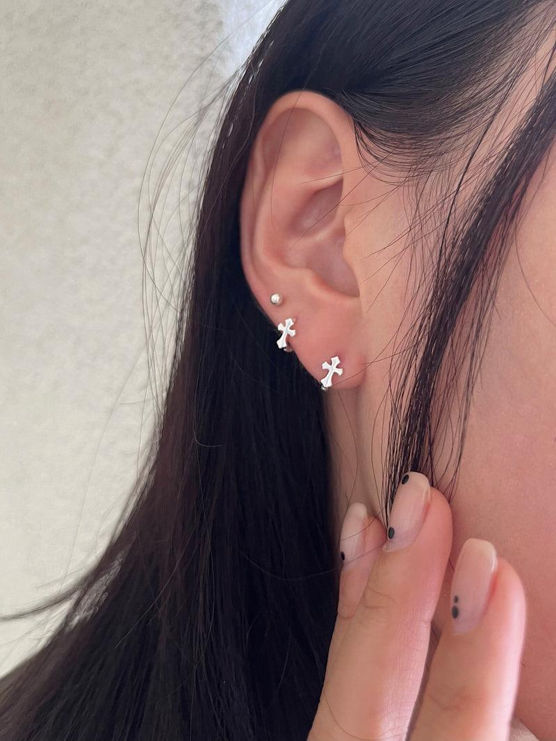 - ต่างหูทรงไม้กางเขนสไตล์โกธิกแต่ดูสะอาดตาที่เข้าคู่กับแหวนขนาดมินิ